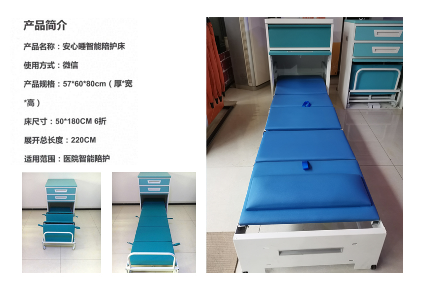 2、醫(yī)療機(jī)構(gòu)方:智能便民陪護(hù)床為醫(yī)院病房節(jié)省空間;而且陪護(hù)人員能就近得到很好的休息,也為院方解決了管理難的苦惱。